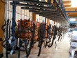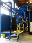 The shot blasting machine is integrated into a complete line for shotblasting and painting. Line is used mostly for shot blasting and painting metal hooks for car trailers. The following machines are suitable for shot blasting elements such as castings, forged parts, hanging objects, bars and various metal structures. Work pieces within the blast machine are rotating and moving in a way that makes it possible for very effectively cleaning.