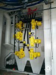 Shotblasting machine is integrated into the shotblasting and painting line. Machine is equipped with highly efficient Siapro E-ECO turbines. Siapro reference in Europe. Turnkey project Siapro.