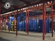 Tunnel machine is constructed for continues blasting of parts. Parts can be transported one after the other. The difference from H or Hp machine is that the piece doesn’t rotate and that is also why you need so many turbines. Sealing tunnel is 6 m long on each side and as a special adding is blow off fan on the exit of the chamber. Customer uses the machine for blasting welded structures.