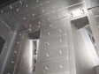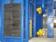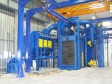 Tunnel machine is constructed for continues blasting of parts. Parts can be transported one after the other. The difference from H or Hp machine is that the piece doesn’t rotate and that is also why you need so many turbines. Sealing tunnel is 4 m long on each side and as a special adding is blow off fan on the exit of the chamber. Customer uses the machine for blasting welded structures.