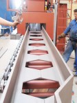 Machine was constructed to blast Al profiles of max dimension 600x400 mm. Machine is also equipped with ATEX execution filter for Aluminum. Because surface of the profile is of most importants frequency inverters are installed.