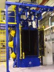 Reference 187: Shotblasting machine with skip and conveyor belt for TRB 400 unloading, shotblasting machine for large quantities of work pieces of small metal parts